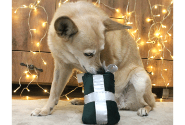 Świetnym prezentem dla psa będzie zabawka, która łączy w sobie dwie funkcje – może być zarówno pluszakiem do zabawy, jak i węchową zabawką na przysmaki. Składa się z dwóch zszytych ze sobą pluszowych ścianek, które tworzą kieszonkę, zawiązywaną u góry wstążką. Aby dostać się do schowanego smakołyku, psiak musi odwiązać kokardę. Uszycie tej zabawki zabiera trochę czasu, ale przecież chodzi tu prezent pod choinkę dla naszego pupila.
